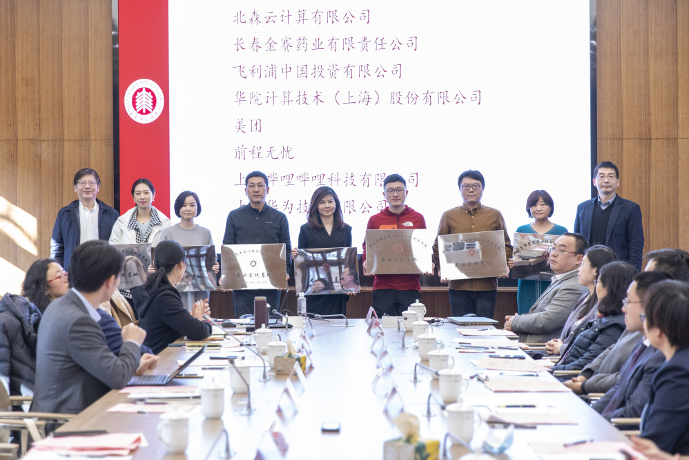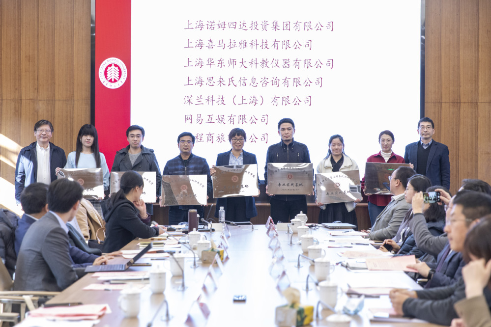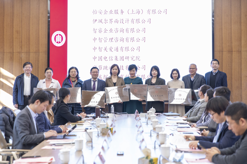 顾红亮、周晓林为北森云计算有限公司、长春金赛药业有限责任公司、飞利浦中国投资有限公司、华院计算技术(上海)股份有限公司、美团、前程无忧、上海哔哩哔哩科技有限公司、上海华为技术有限公司等23家企业实践基地授牌。