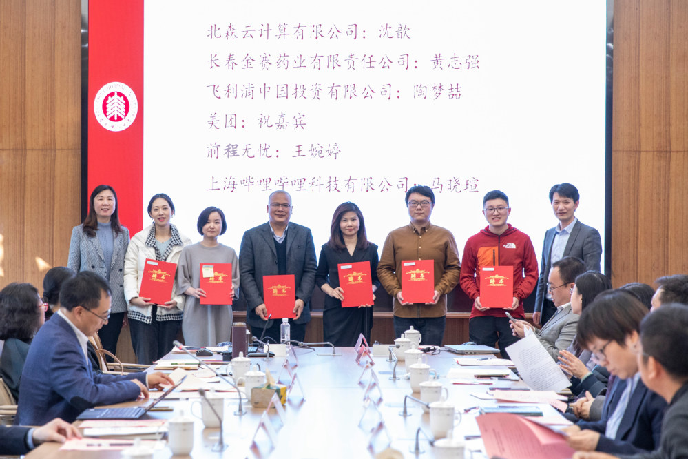 吴健、方媛为北森云计算有限公司沈歆、长春金赛药业有限责任公司黄志强、飞利浦中国投资有限公司陶梦喆、美团祝嘉宾、前程无忧王婉婷、上海哔哩哔哩科技有限公司马晓瑄等35位实践指导教师颁发聘书。