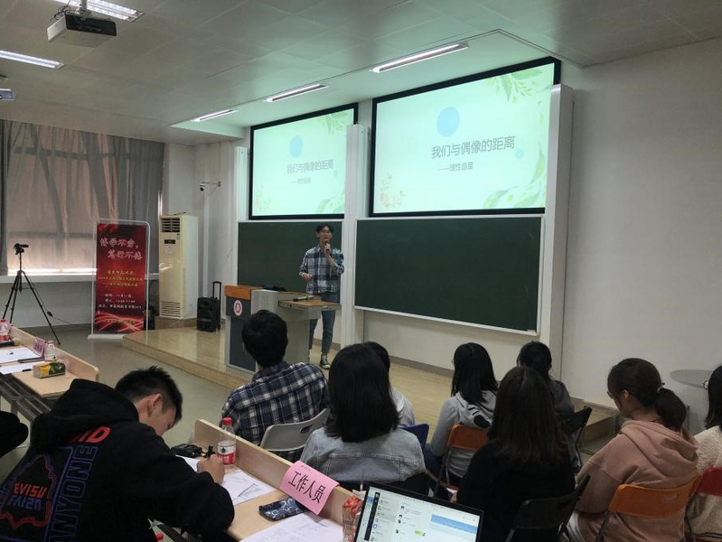 在教学技能比赛中,参赛选手一个个化身“心理老师”就“追星”这一主题进行细化,展开了教案设计。经过激烈的角逐,叶子宁、徐璐入围上海市五校联赛。