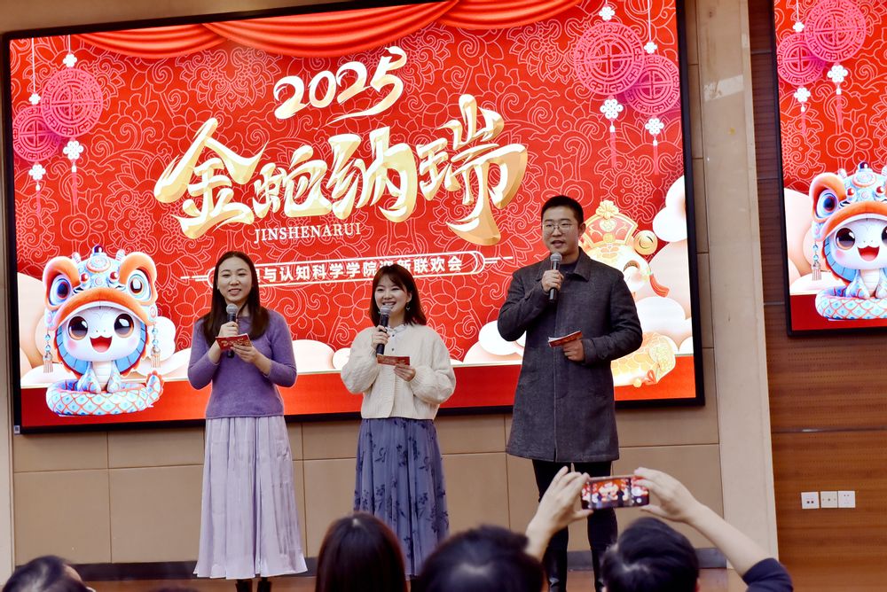 辞旧迎新,金蛇纳瑞,2025年1月8日,心理与认知科学学院工会在俊秀楼223报告厅,举办了一场温馨欢乐的2025年迎新联欢会。活动由施泽艺、包寒吴霜、周赟三位老师联袂主持。