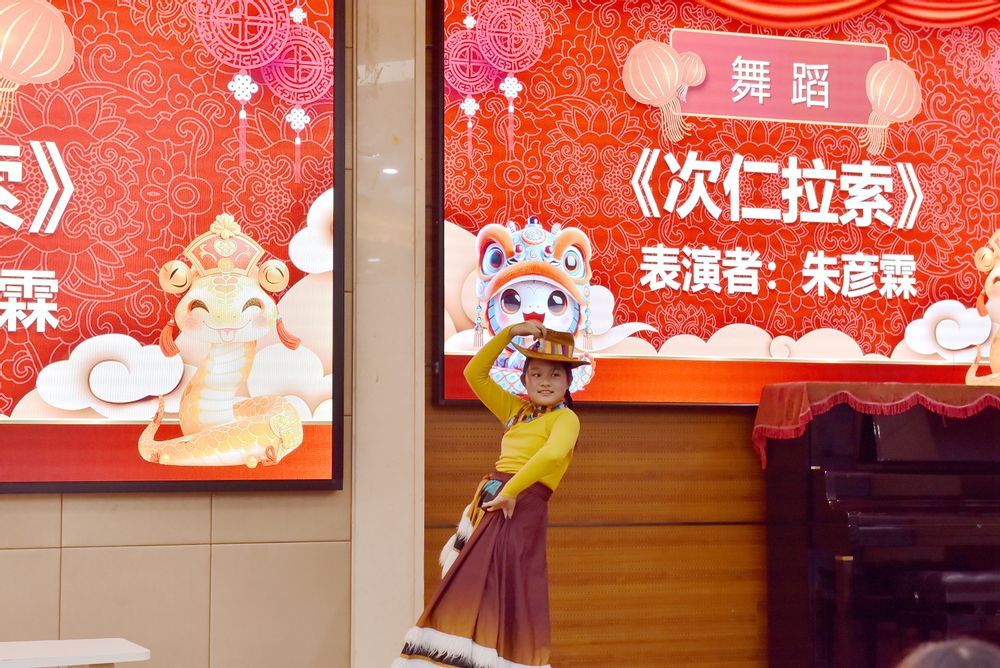 朱彦霖小朋友的藏族舞蹈《次仁拉索》,展现了一种神秘而美丽的民族风情。她身着华丽的传统服饰,手持牛仔帽,伴随着悠扬的音乐,朱彦霖用身体语言讲述了高原上小朋友充满童趣的生活,让观众们领略到了藏族小朋友对生活的热爱。