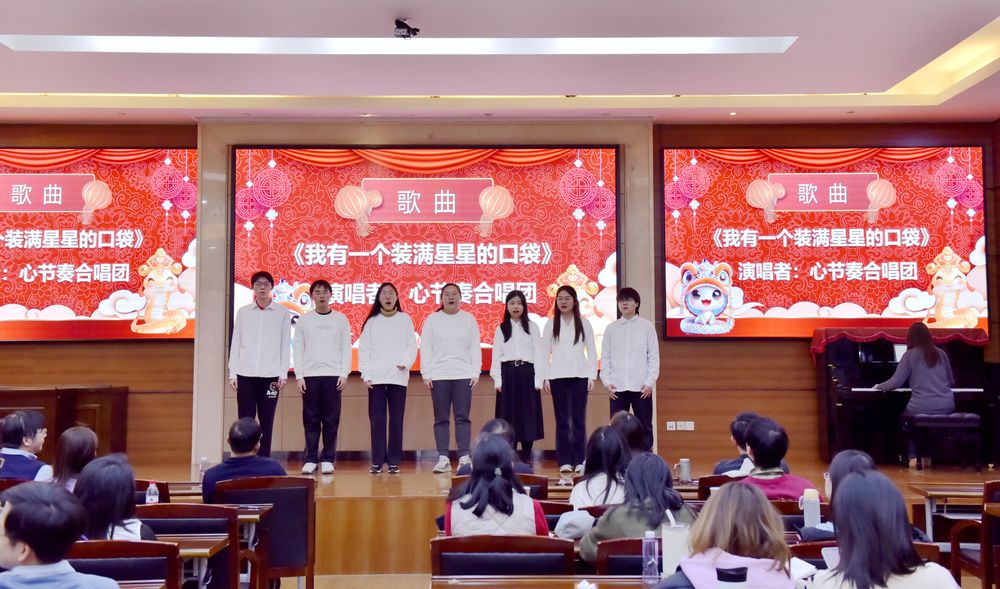 在一片祥和喜庆的氛围中,联欢会拉开帷幕。“心节奏”合唱团首先带来的歌曲《我有一个装满星星的口袋》宛如天籁之音,歌曲通过梦幻的旋律和富有诗意的歌词,构建了一个充满幻想与美好的世界,传达了对自闭症儿童群体的理解和关怀,鼓励人们珍惜内心的美好,充满了希望与梦想的气息。