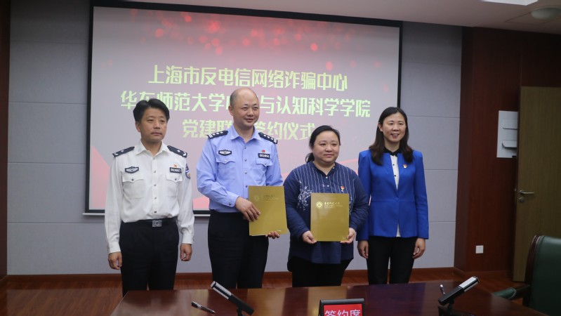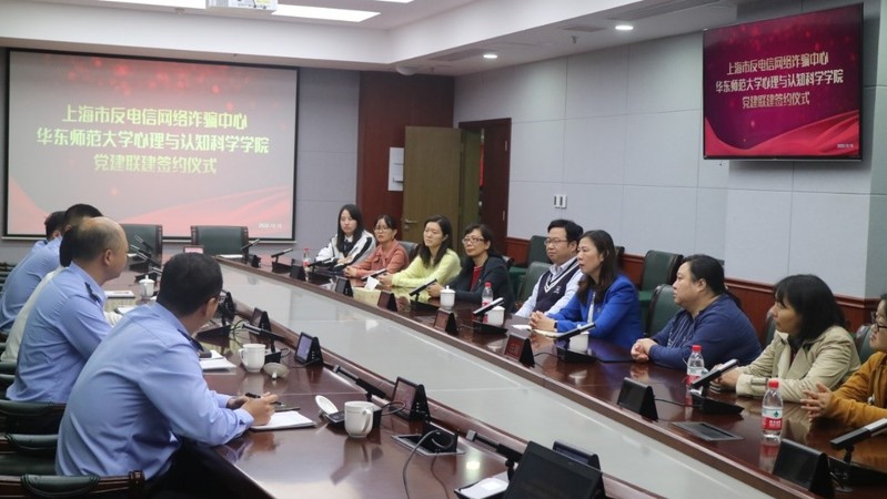 10月16日下午,华东师大心理与认知科学学院与上海市反电信网络诈骗中心举行党建联建签约仪式。上海市公安局刑侦总队副总队长姜伟良、九支队政委钱世平、文保分局刑侦大队副大队长徐凤伟及色情小说 党委书记方媛、党委副书记兼副院长庄瑜、党委委员孟慧、刘晓陵、教师代表李林及辅导员、学生党支部书记参加了签约仪式。