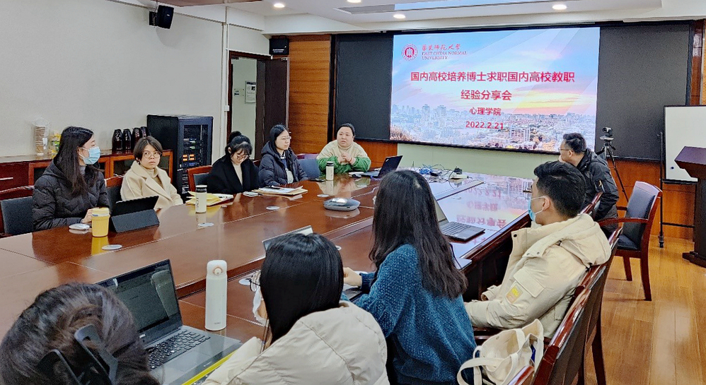2022年2月21日,心理与认知科学学院在俊秀楼305,举办了国内高校培训博士求职国内高校教职攻略分享会。分享会邀请心理与认知科学学院副院长郝宁、心理学系高晓雪、应用心理学系杨莹、应用心理学系周宁宁担任嘉宾,由院党委副书记兼副院长庄瑜主持,近40学生参加。