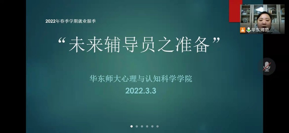 2022年3月3日,心理与认知科学学院在线上举办了“未来辅导员之准备” 分享沙龙。沙龙邀请了上海财经大学学工部部长褚华、华东理工大学党委学生工作部副部长征春秀和华东政法大学学工部德育办辅导员队伍建设负责教师黄小园三位嘉宾进行分享,华东师范大学党委学(研)工部副部长杨艳红出席了本次会议。院党委副书记兼副院长庄瑜主持,共有80余位心院学生于线上参与。