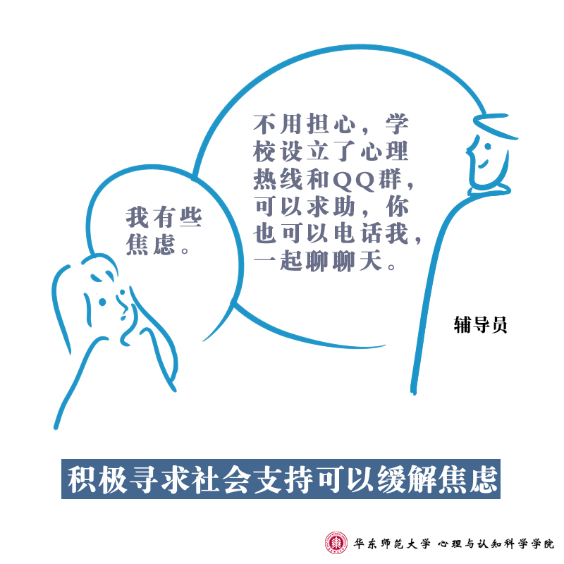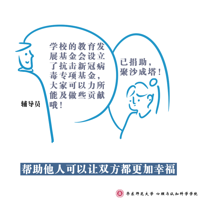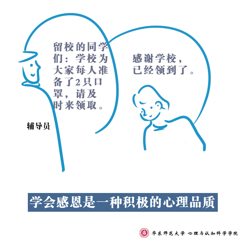 在面向全社会提供疫情防控心理支持的同时,华东师范大学心理与认知科学学院的师生们也通过手绘形式,向大家进行心理学知识的科普:防疫工作中,高校辅导员们每天与学生保持联系,全面了解学生的身体状况、动向并发布各类通知,系列③所描述的是师生之间的互动行为所呈现的心理学意义。手绘设计人:2018级本科生喻里雯文字:庄瑜、董镕指导教师:沈怡廷、陆静怡