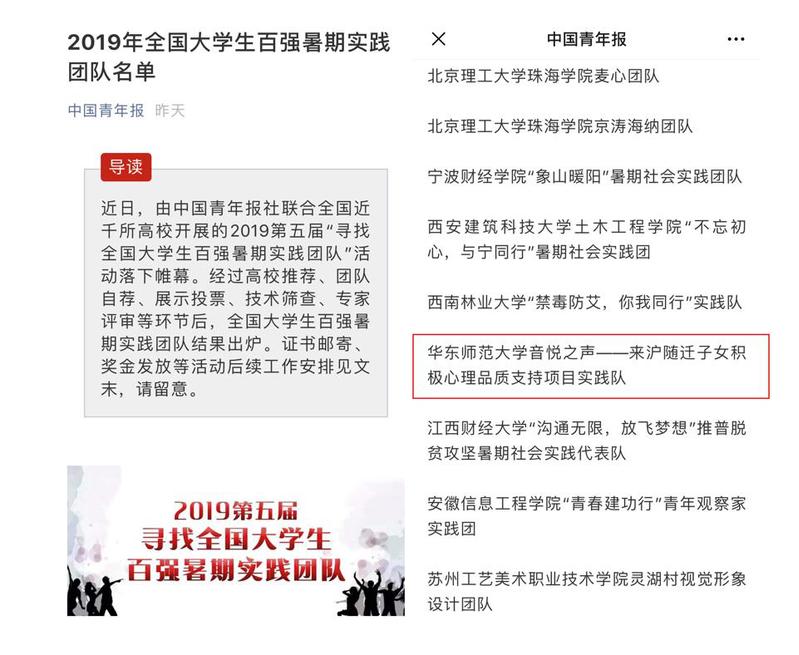 近日,由《中国青年报》组织的第五届“寻找全国大学生百强暑期实践团队”活动落下帷幕。经高校推荐、专家评审等环节,色情小说 “音悦之声——来沪随迁子女积极心理品质支持项目实践队”获评“全国大学生百强实践团队”。