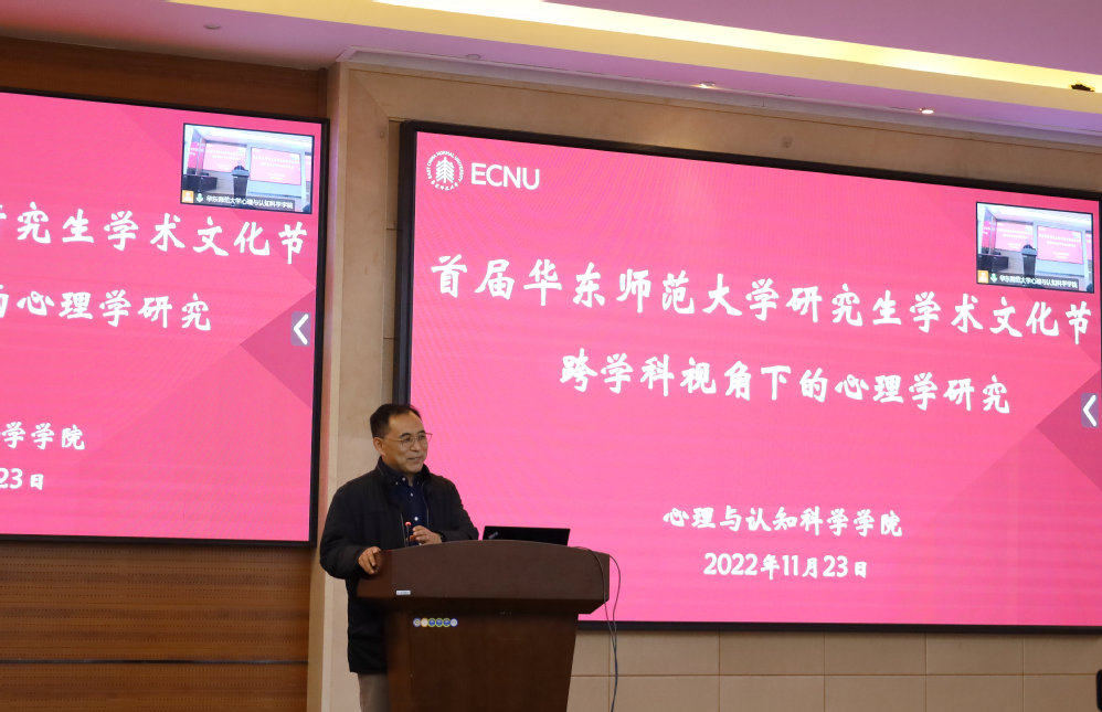 开幕致辞中,华东师范大学研究生院副院长杨福义教授指出,学术文化节的定位是打造高端的研究生学术交流平台,营造浓厚的学术氛围。 “双一流”建设要打破传统学科间的壁垒,在前沿和交叉学科领域形成新的学科增长点。他肯定了心理与认知科学学院在学科融合上的科研和探索,同时也期待学院培养出更多具有心理学科背景的交叉领域人才,为国家和社会重大需求提供解决方案。