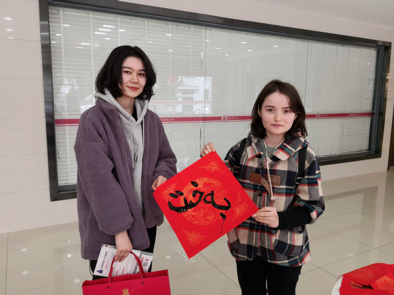 来自新疆的同学也为我们展示了维语的“福”字,通过春联表达对家乡的祝愿。