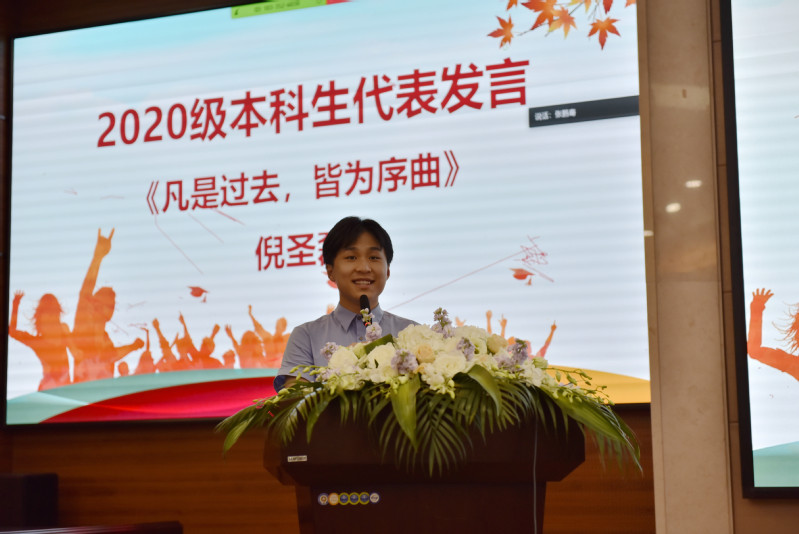 2020级本科生新生代表倪圣磊以《凡是过去,皆为序曲》为题,分享了自己报考心理学的缘由,倡议心院新生践行孟宪承先生所提的“智慧的创获,品性的陶融,民族与社会的发展”,在学习知识的基础上,将知识内化为自己个人的修养和气质,将知识运用在帮助自己和他人的生活中。在同学之间,要发挥守望相助的精神,互相友爱,培养自己更为广阔的胸怀。作为心理学专业的学生,要投身心理学科研,探索学科中未知的领域,为心理学的发展添砖加瓦。