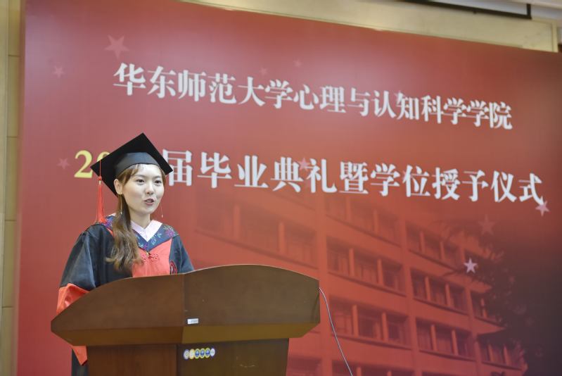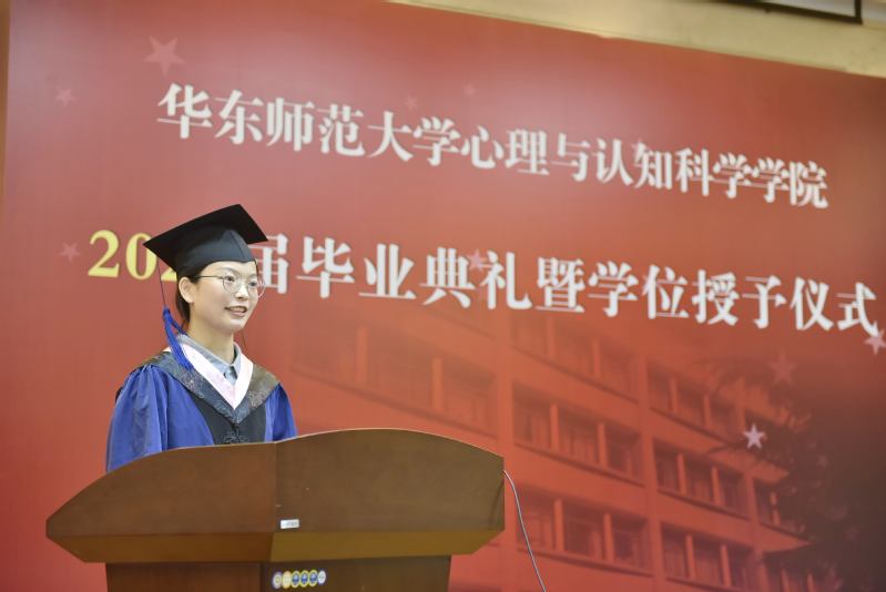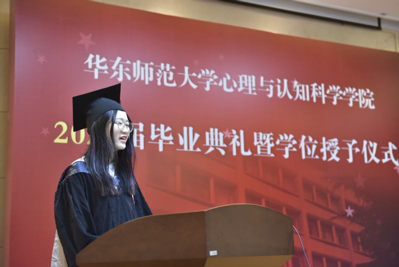 博士生代表、本硕博均就读于色情小说 的齐芳珠谈到,十一年的学习时光,华东师大见证了自己的改变与坚守,她认为师大赠予了学子们温柔与力量,希望心理学子们能将这份温柔与力量传递下去,无论未来是否从事科研工作,都能不忘初心,求实创造;无论未来是否为人师表,都能俯仰之间,无愧于心。