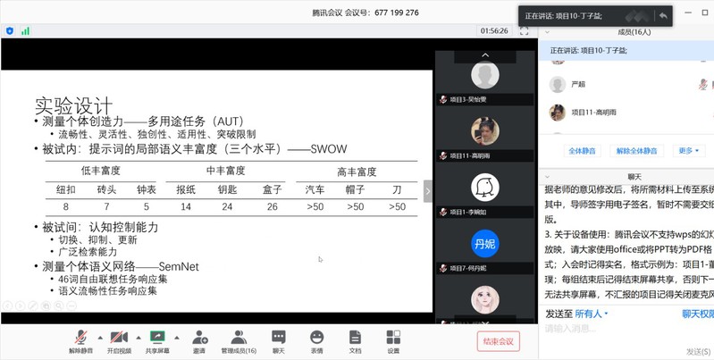 参加本次答辩的创新项目涉及到当下心理学重要的多个研究领域参加本次答辩的创新项目涉及心理学研究的多个领域。应用心理学的研究主题包括信任、决策、合作行为、道德规范、抑郁症状和焦虑症状等;发展与教育心理学的研究主题包括儿童心理理论和儿童反应差异等。认知神经方向的研究主题包括表征手势、视觉工作记忆、阅读理解任务、语义网络和认知控制、自发性知觉经络反应、疼痛、抓握控制等。各个项目组重点汇报了项目相关的、科学问题、研究设计、研究结果、面临问题以及下一步的工作计划等。评审专家就每个项目的实施细节和存在的问题进行了针对性的交流,为项目的顺利执行和质量提升提供了必要的指导。