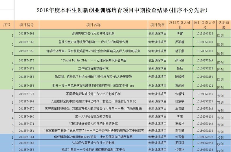 2019327日下午13时,心理与认知科学学院按照《2018年度本科生创新创业训练培育项目中期检查及2019年度国创、市创、校创项目认定的通知》要求,在田家炳教书院230室、234室开展2018年度本科生创新创业训练培育项目中期答辩会。