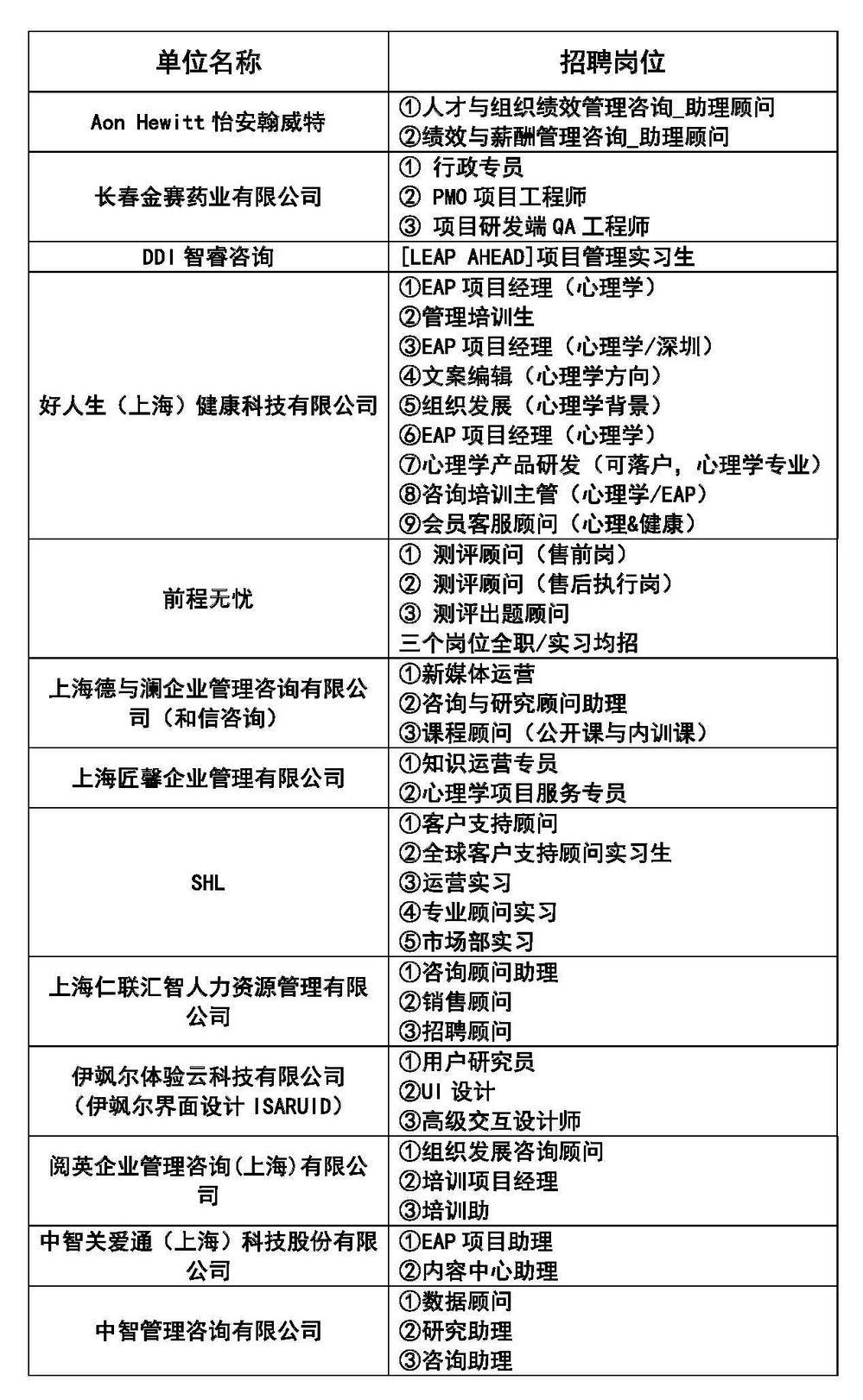 在上午的企业宣讲环节,匠馨咨询、中智关爱通和DDI三家公司的招聘负责人分别介绍了公司情况和目前的岗位需求。