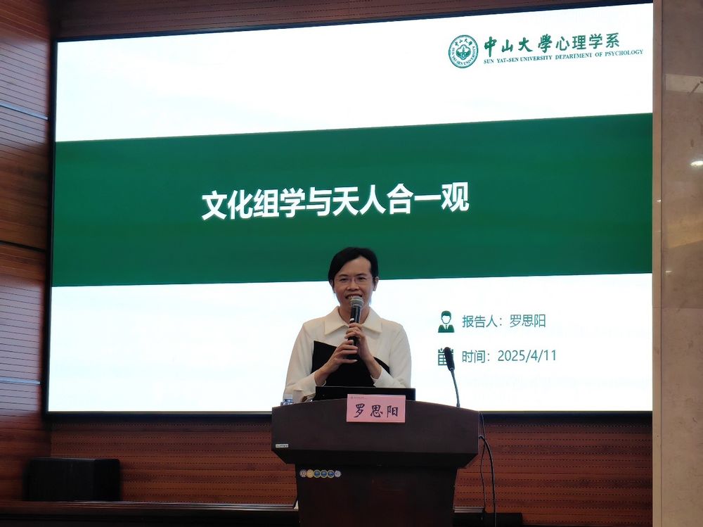 2025年4月11日下午,华东师范大学心理与认知科学学院邀请中山大学心理学系罗思阳副教授作题为“文化组学与天人合一观”的学术报告,本次报告在俊秀楼223报告厅举办。报告由高晓雪研究员主持。相关领域青年教师、研究生和本科生等60余人参加了本次报告会。