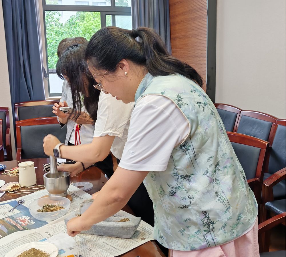 2025年5月28日下午,心理与认知科学学院工会在俊秀楼 305会议室举办了一场端午节活动——制作古法中药香囊,活动吸引了20余名老师参与,现场氛围温馨而欢乐。