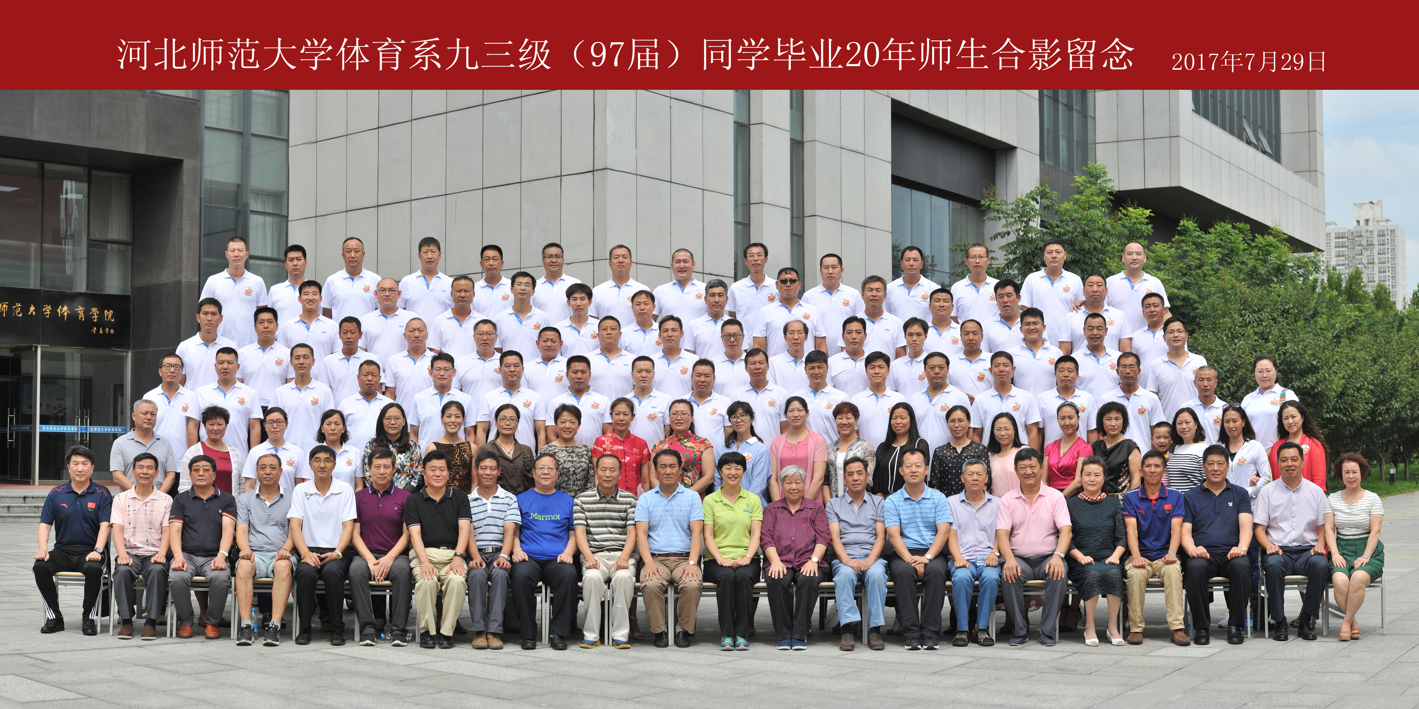 时光荏苒,岁月如歌。转眼间,我们已经离开母校二十个春秋。老同学,好久不见了!二十年的分别,二十年的想念,给了我们相约相聚充足的理由。回顾那些青春燃烧的岁月,梦回母校的一草一木,是那么的美好、那么的亲切。忆往昔,我们风华正茂,激情洋溢,校园里,我们生活五彩缤纷;运动场,我们拼搏激烈竞争;教室里,我们刻苦做学问。九三级120人共培养博士研究生9人,硕士研究生42人,全部都成为各行各业精英及领袖人才,你们是母校的骄傲!
