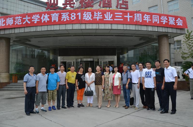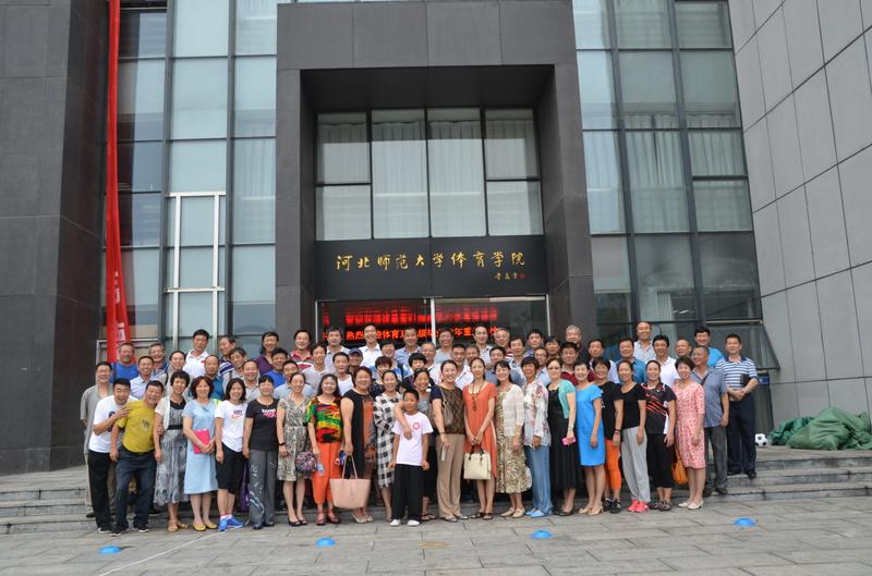 2015年8月1日上午,河北师范大学体育楼前的广场上,一群虽已年过半百但风采依旧的体育人,与一群正在练习团体操的大学生在此不期而遇,他们感慨万千:当年我们就像他们这般年纪,风华正茂,可时光如梭,转眼离开母校30年了!