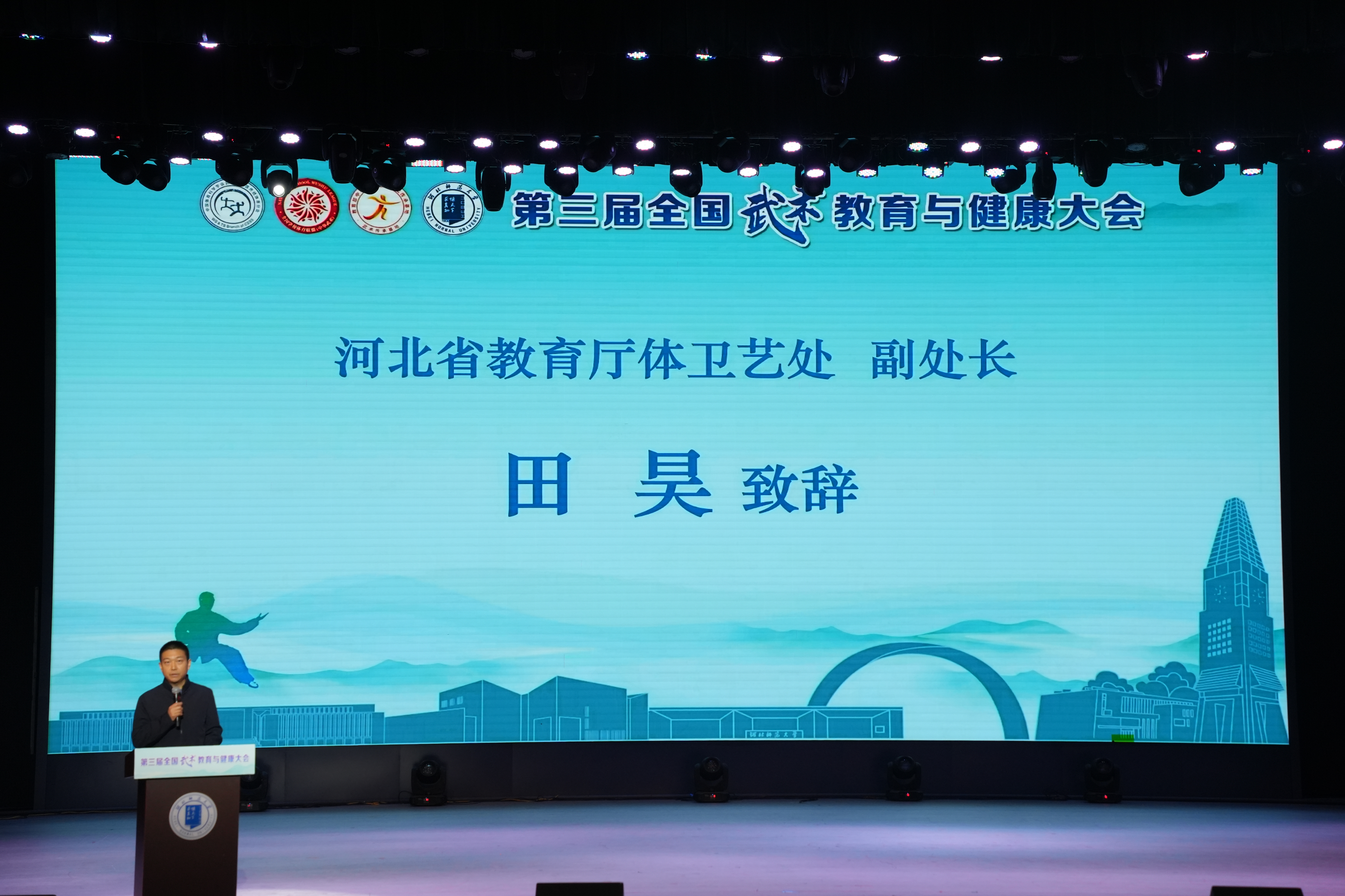 田昊在致辞中强调,河北省深入贯彻习近平总书记关于体育的重要论述,制定并完善相关政策,促进武术教育的创新发展。他指出,河北是中华武术的重要发源地之一,诞生了无数武术名家,也孕育了众多流派,为中华武术的繁荣发展,做出了不可磨灭的贡献。近年来,河北始终将武术教育视为传承民族文化、弘扬民族精神的重要抓手,不断推动武术教育进校园、进课堂,通过创新教学模式、丰富教学内容、完善评价体系等一系列举措,努力提升武术教育的普及率和教学质量。同时,积极探索武术与健康、武术与科技的融合路径,旨在让武术这一传统文化瑰宝在新时代,焕发出更加璀璨的光芒。