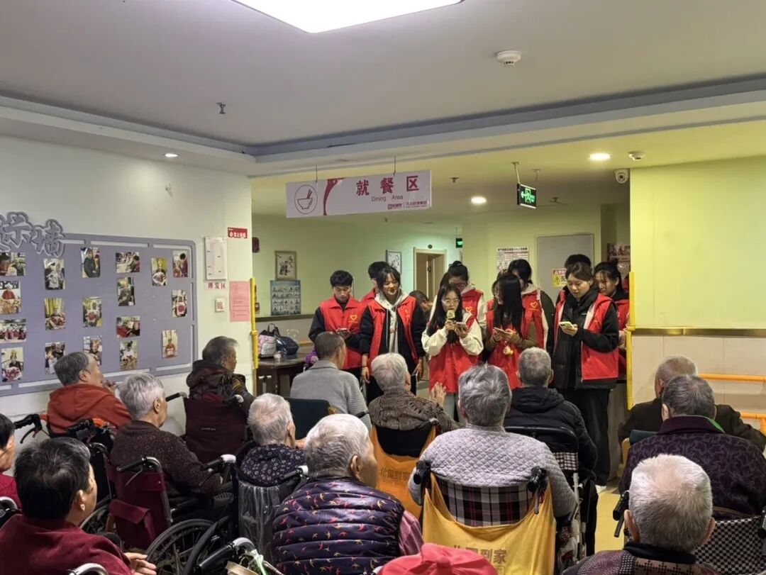 展演尾声,熟悉的旋律悄然响起。志愿者与老人们共同唱响《强军战歌》,激昂的节奏唤起老人们对峥嵘岁月的记忆;随后《茉莉花》的悠扬曲调缓缓流淌,婉转旋律中满是温情。歌声里既有跨越代际的共鸣,更藏着深深的情感联结,现场氛围在合唱中愈发浓厚。
