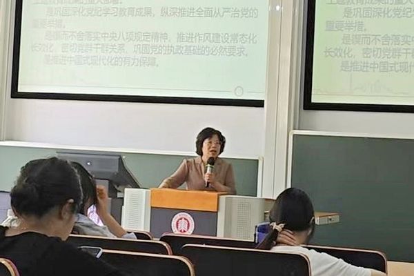 5月21日,华东师范大学特聘教授周敬青老师带来专题讲座《深入贯彻中央八项规定精神,推进作风建设常态化长效化》。周教授从四个方面阐述了中央八项规定精神的内涵,强调了加强作风建设的重要性,并讲述了习近平总书记身体力行践行八项规定精神的事例。讲座最后,周教授强调学习中央八项规定精神是入党积极分子的必修课,只有深入学习、严格对照、自觉践行,才能筑牢信仰之基,向共产党员的标准靠拢。