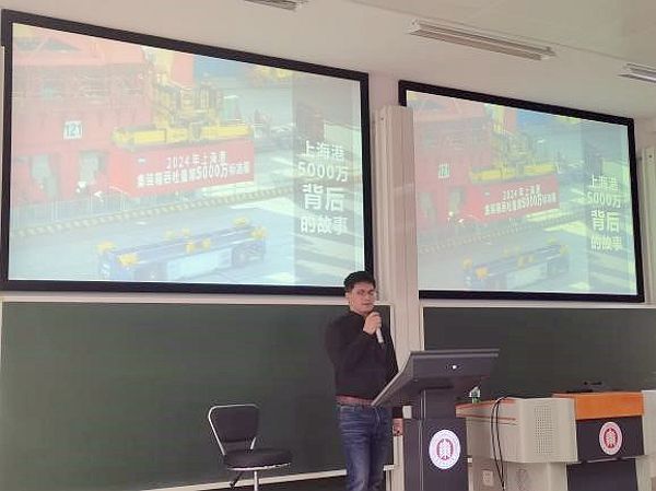 开班仪式后,上港集团宣传主管任闵昱老师作《上海港5000万背后的故事》主题讲座,通过数据和图片展示了上海港的发展历程,强调其作为全球航运领导者的重要地位。讲座回顾了上海港自1843年开埠以来的历史,特别突出了改革开放后取得的跨越式发展,以及2024年集装箱吞吐量突破5000万标准箱的里程碑意义。他鼓励当代青年学习上港人敢为人先、迎难而上的精神,为实现中华民族伟大复兴贡献力量。学员们深受鼓舞,表示要将上海港的故事作为学习榜样,坚定信仰,热爱国家,为国家现代化建设贡献力量。